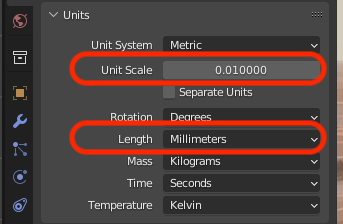 Under Properties > Units: set Unit Scale to 0.01, Length to mm |